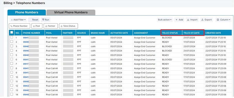 Cập nhật trạng thái số bị block