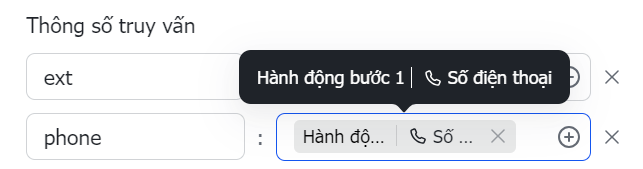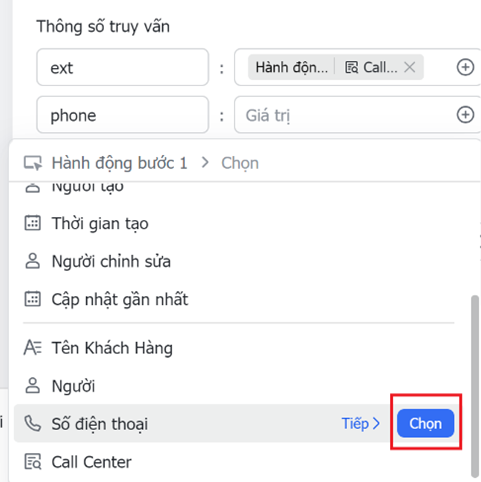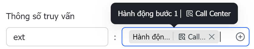 - ext: giá trị là hành động Call center (ext là nhánh số tổng đài đã phân cho user)
