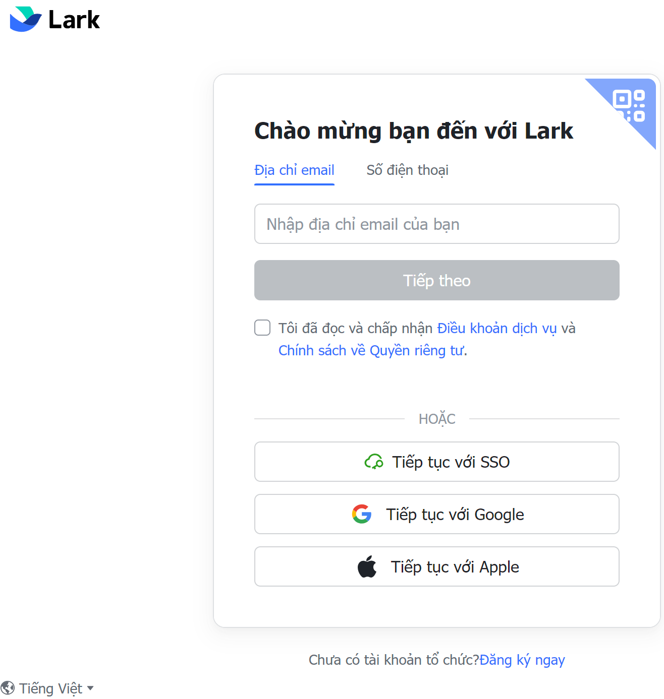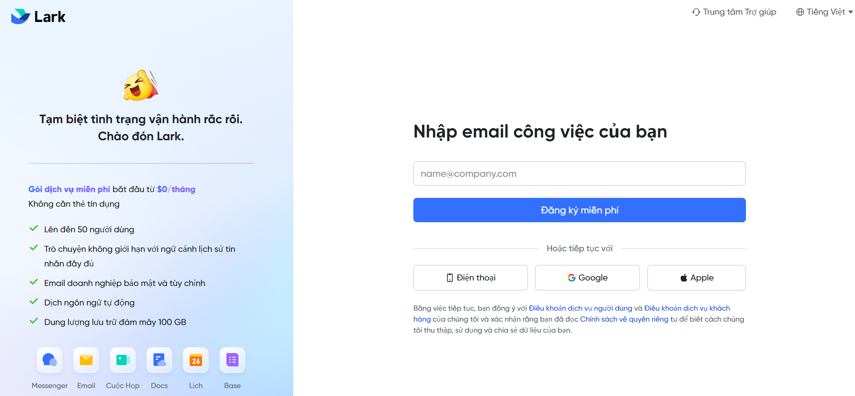 Bước 1: Đăng ký tài khoản Lark theo Link (bỏ qua bước này nếu đã có tài khoản)