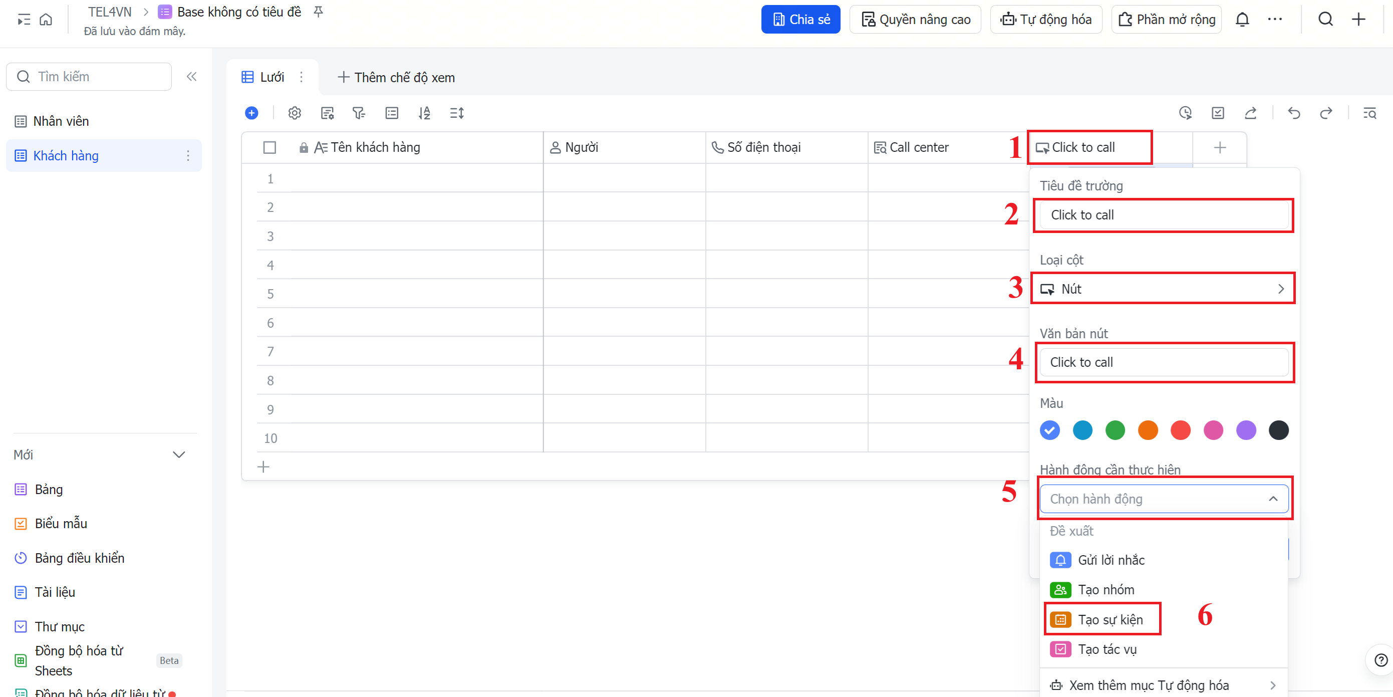 Bước 6: Tạo 2 bảng dữ liệu là "Nhân viên" và "Khách hàng" để cấu hình nhân viên phụ trách và chăm sóc khách hàng