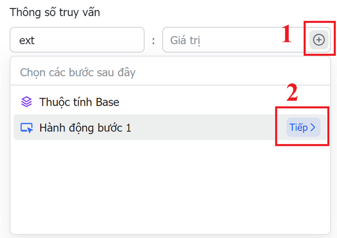Chọn “giá trị” => sau đó chọn “Hành động bước 1” => chọn “tiếp”