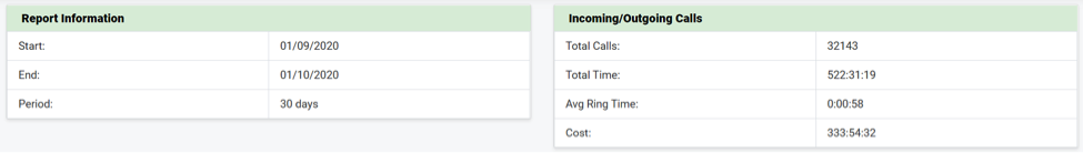 Report tổng hợp chiều gọi ra và gọi vào: